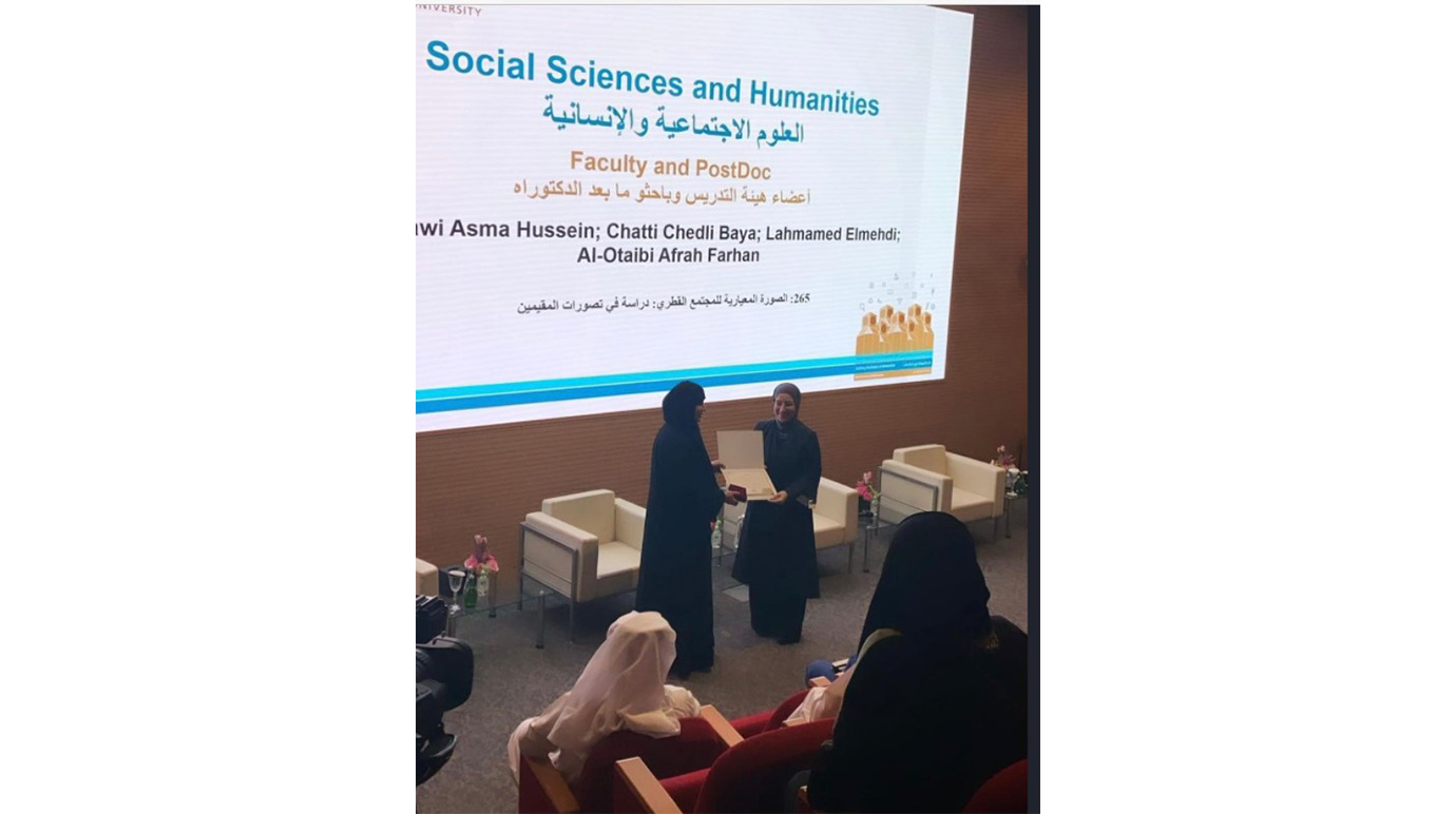 فاز فريق بحثي في مركز ابن خلدون للعوم الإنسانية والاجتماعية بجائزة أفضل ملصق بحثي في فئة هيئة أعضاء التدريس وما بعد الدكتوراه، ضمن المنتدى والمعرض البحثي السنوي لجامعة قطر 2021، وذلك عن بحث الصورة المعيارية للمجتمع القطري: دراسة في تصورات المقيمين، واستلمت الجائزة الدكتورة أسماء ملكاوي أستاذ باحث مساعد في علم الاجتماع في مركز ابن خلدون للعلوم الإنسانية والاجتماعية.